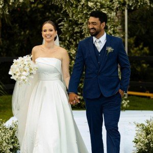 Recomendamos evitar o salto muito fino, em razão do local, que possui áreas em que esse tipo de salto pode afundar ou atrapalhar na hora de caminhar. Saltos mais grossos, blocados ou sandálias confortáveis serão os melhores para aproveitar a festa. Pedimos apenas que evitem branco, off-white e tons muito próximos ao da noiva.